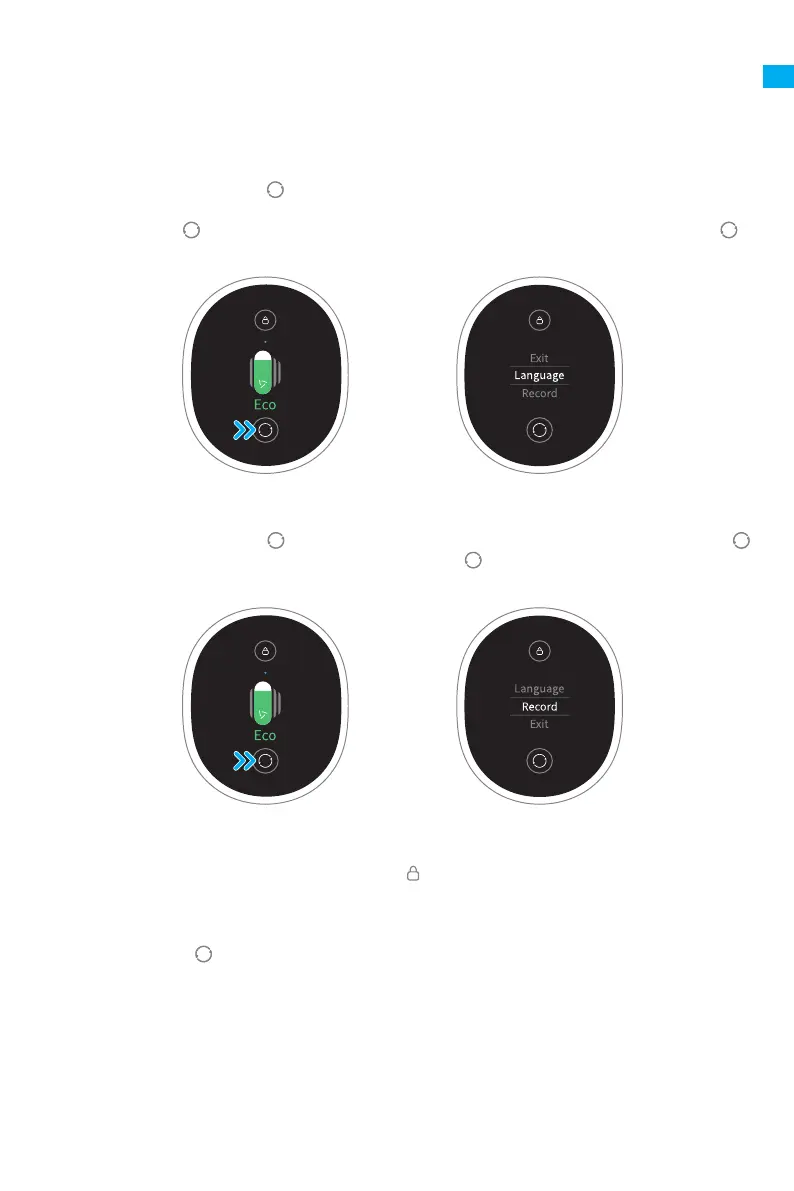 to swtich to "Language". Press the button for 1 second to enter the language selection