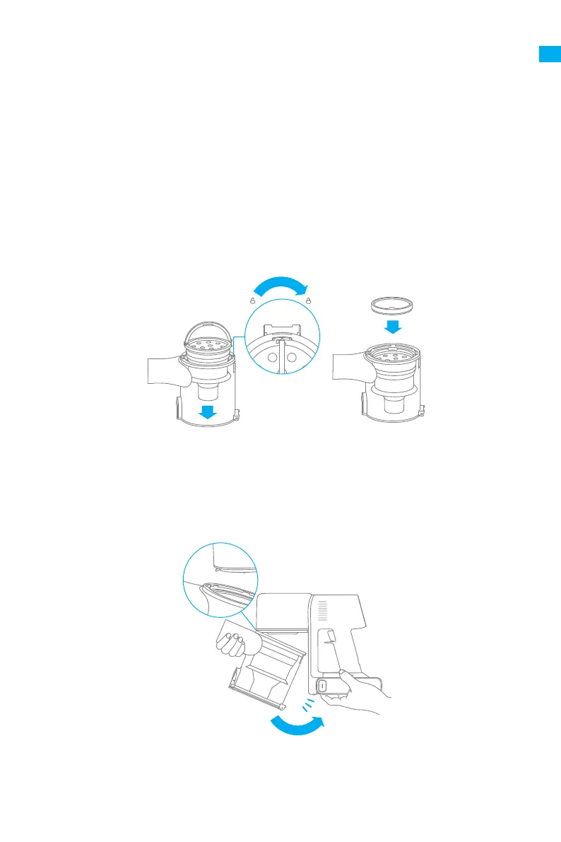 1. Inserte verticalmente el ciclón en el compartimento de polvo y asegúrese de que el