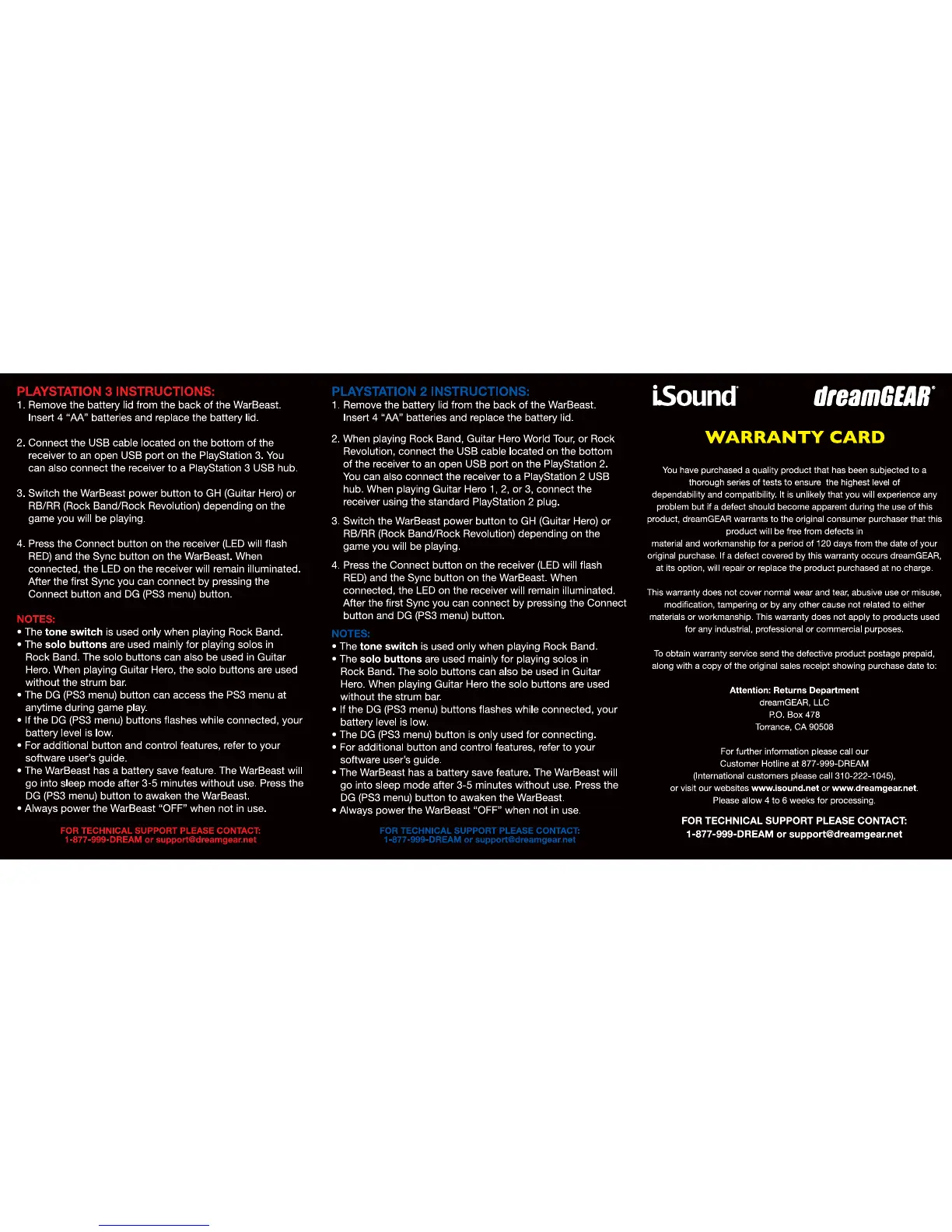 DreamGEAR WarBeast - PlayStation 3 Instructions; Connection and Setup; Notes and Features; PlayStation 2 Instructions