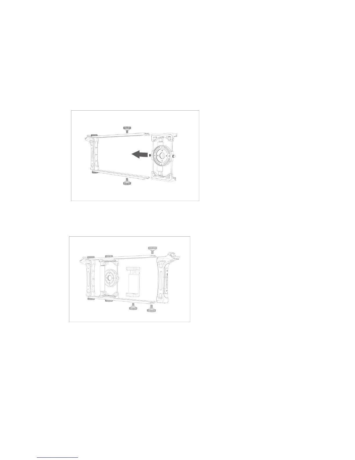 2) Slide the Optics Adaptor between the tracks from the open side and tighten it with two more