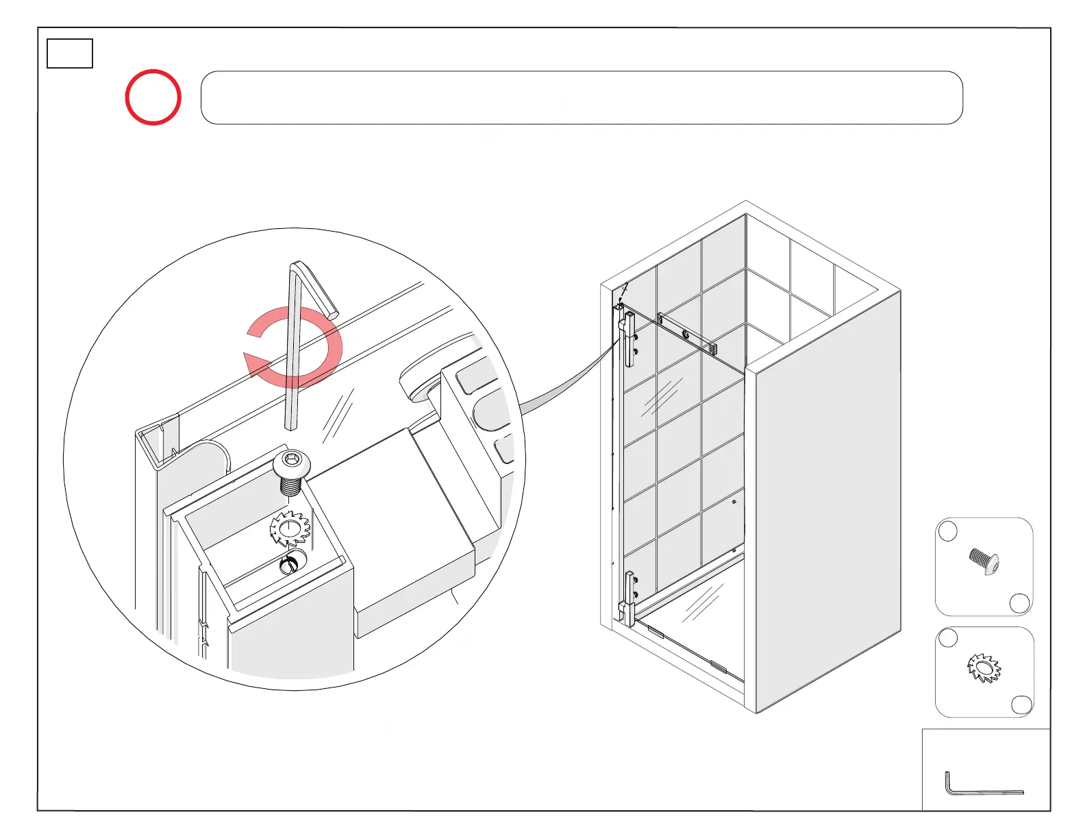 Once the door is adjusted to level and plumb, use the long end of an Allen Wrench to install the M6 x