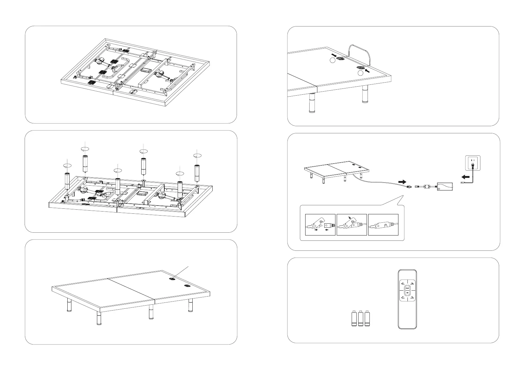 Install legs and tighten by hand.