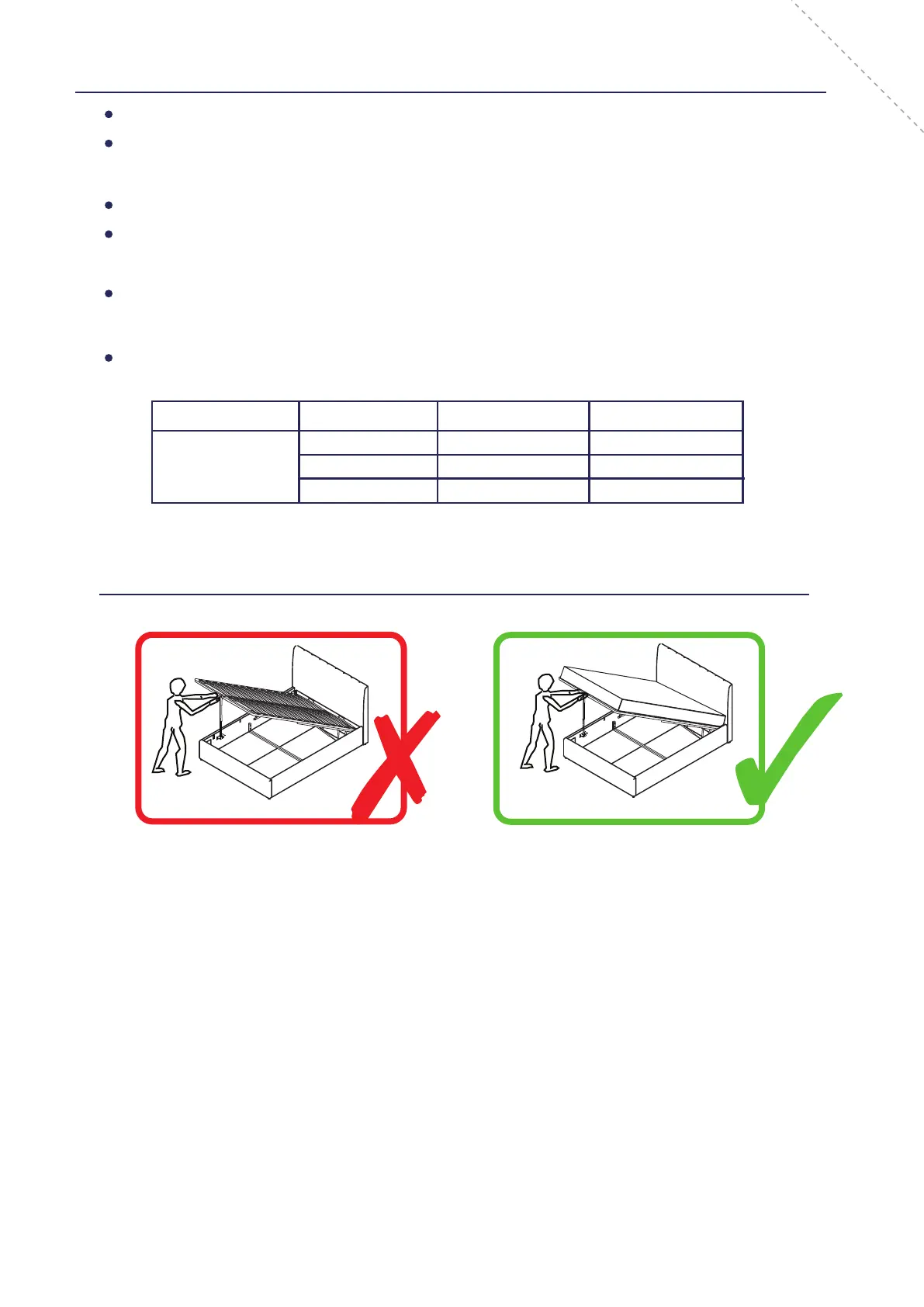 • When lifting the ottoman, remove all bedding except the fitted sheet.