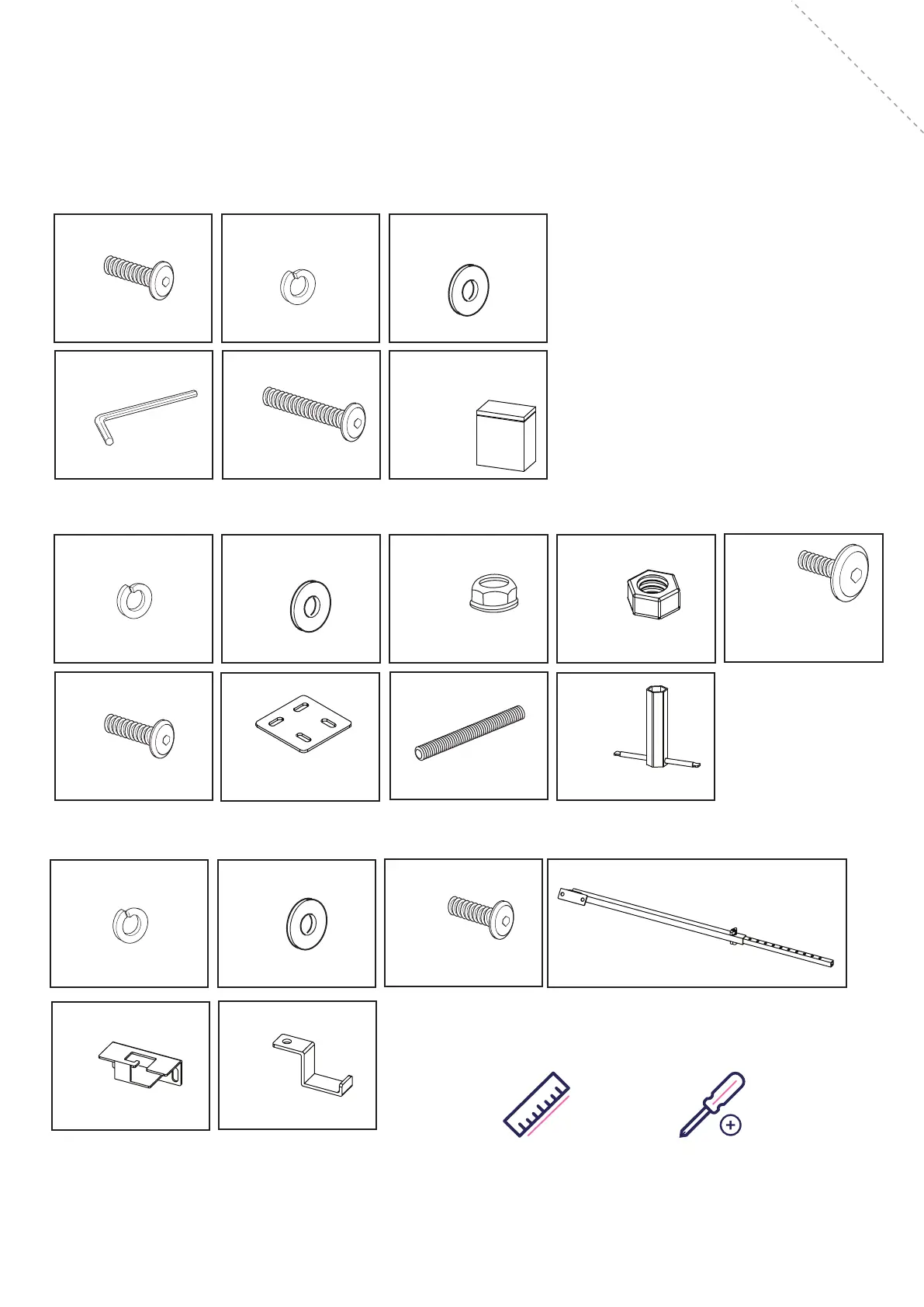Packed in side rail carton, inside Pack 2 - hardware pack (A)