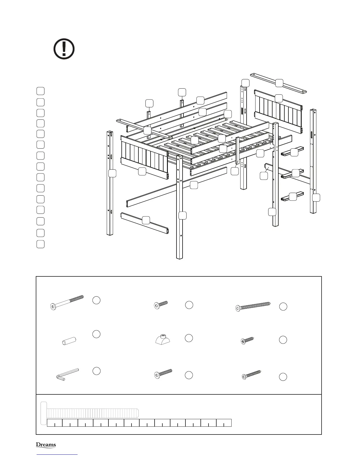 DREAMS Mid Sleeper - Product Components and Fittings; Parts Checklist; Fittings Checklist
