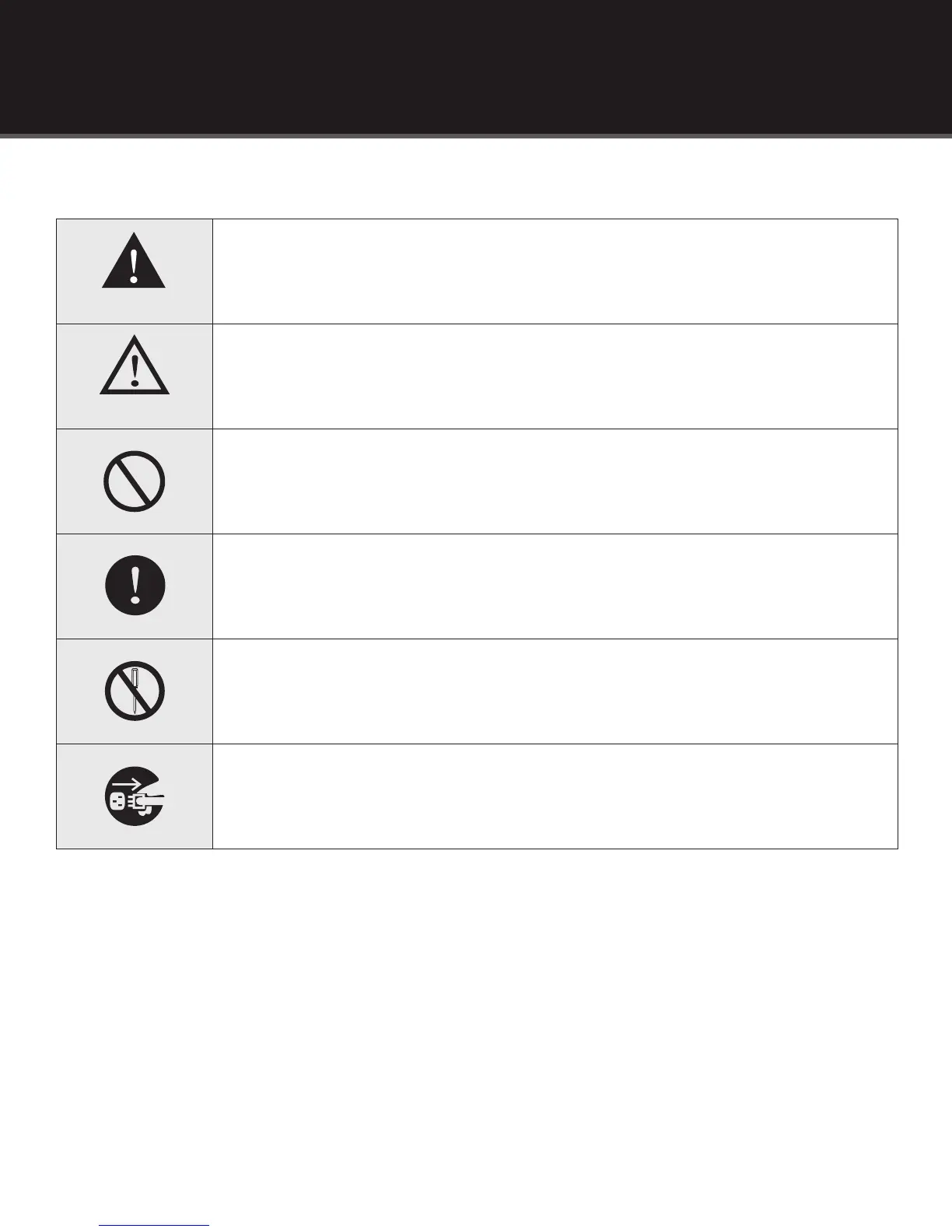 • The above symbols are used to identify important safety instructions. Please familiarize yourself with these