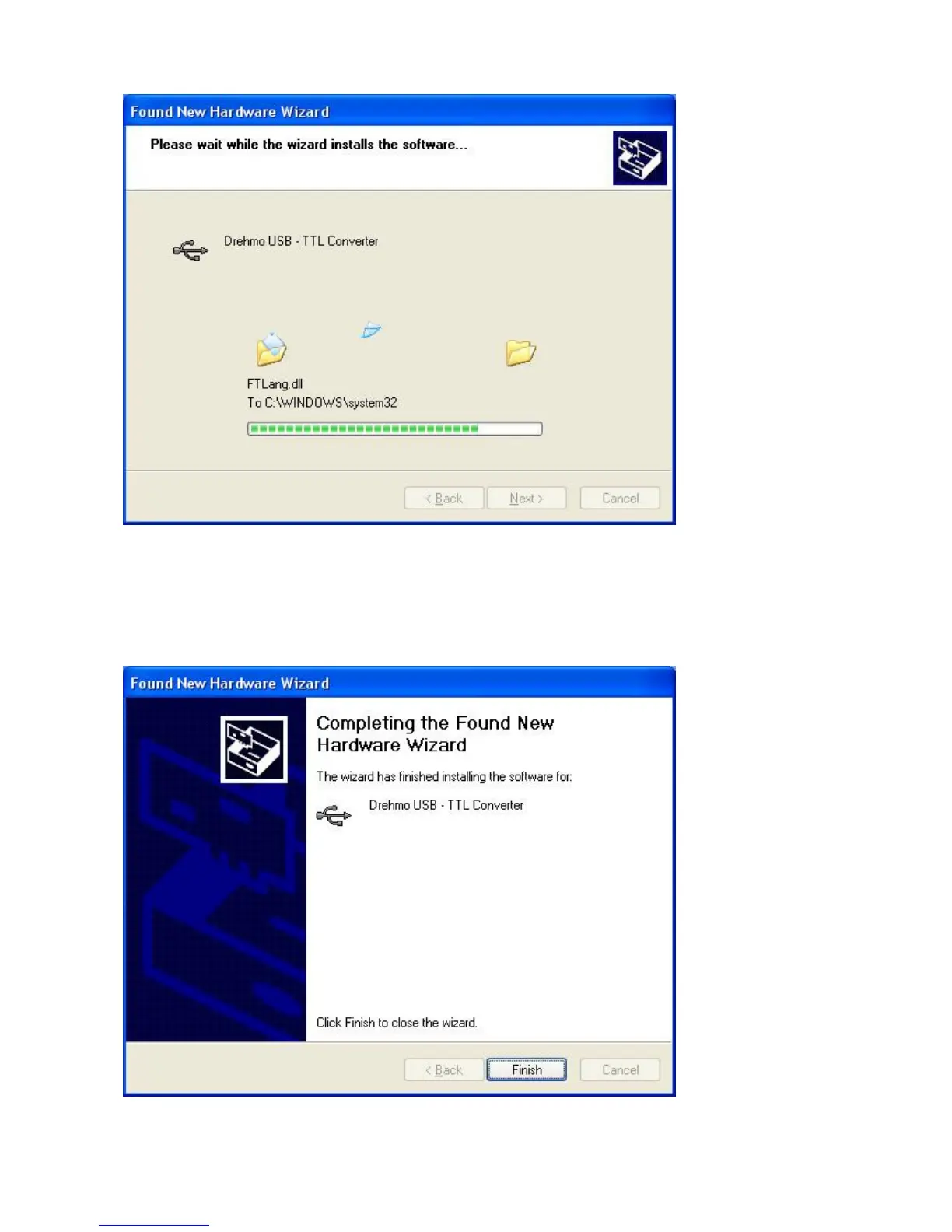 "Finish" to complete the installation. The serial converter driver is now installed. In order to