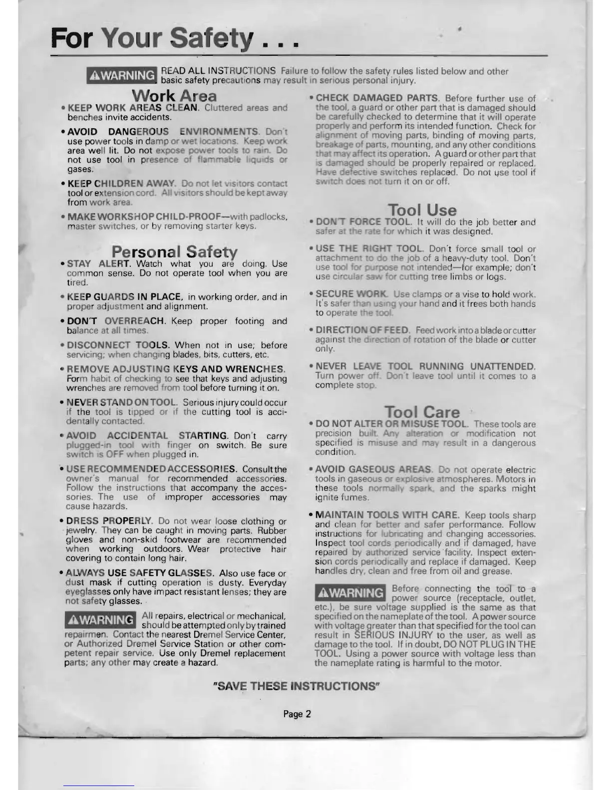 CARE. Keep tools sharp
