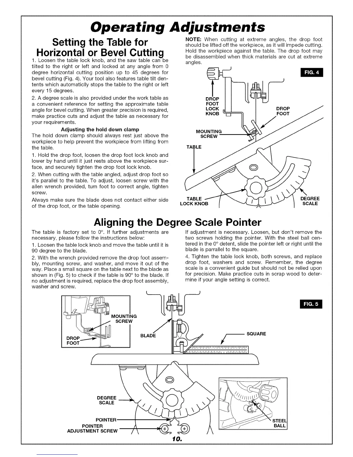 bevel cutting (Fig. 4). Your tool also features table tilt den-