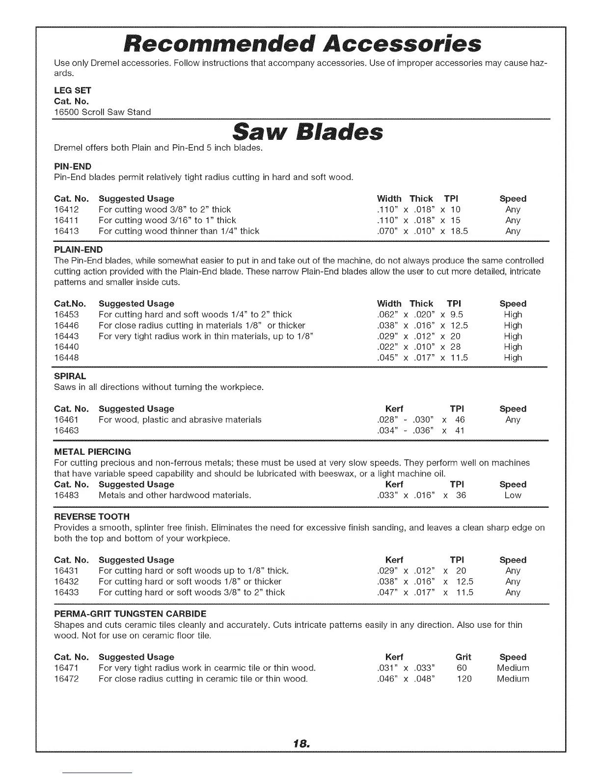 cutting action provided with the Plain-End blade. These narrow Plain-End blades allow the user to cut more detailed, intricate