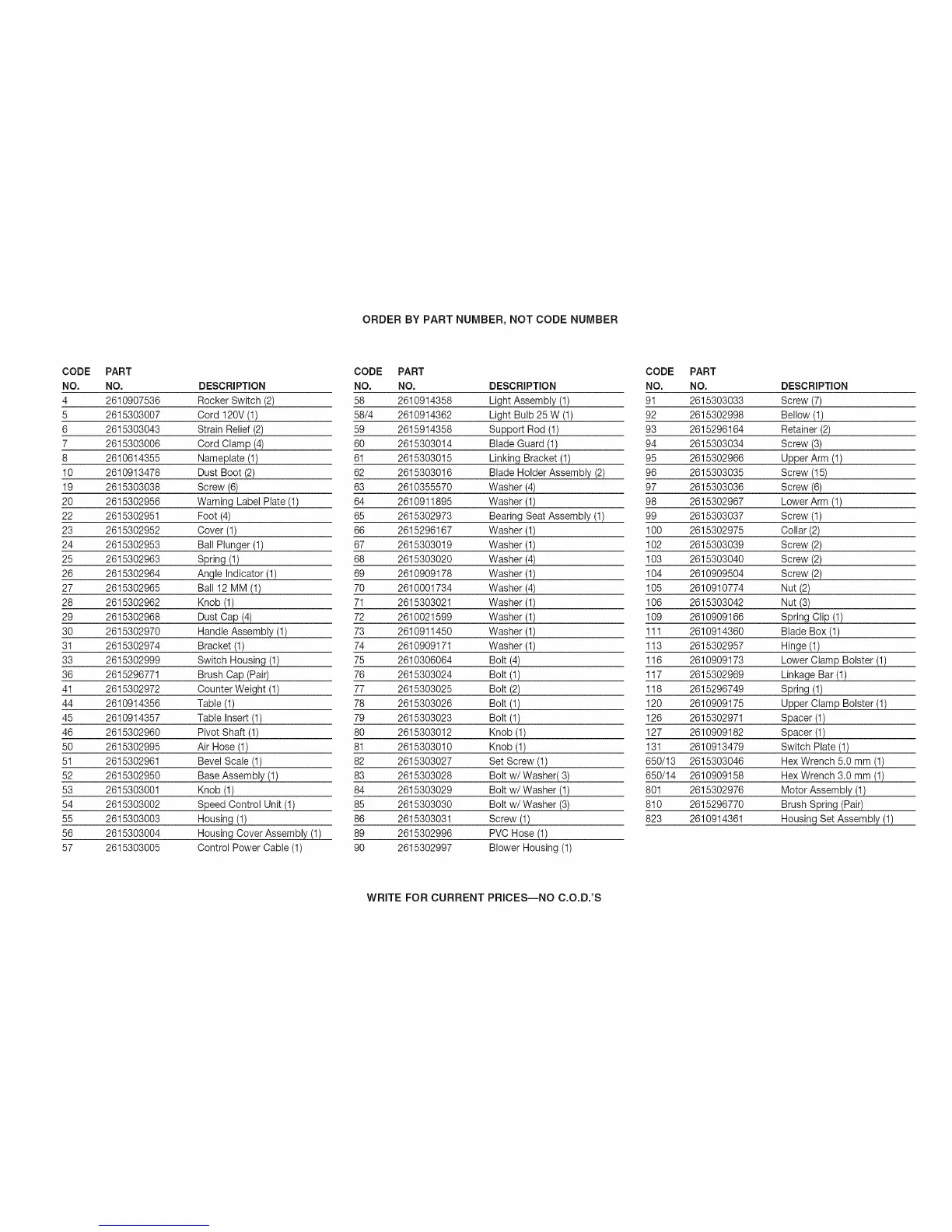WRITE FOR CURRENT PRICES--NO C.O.D.'S