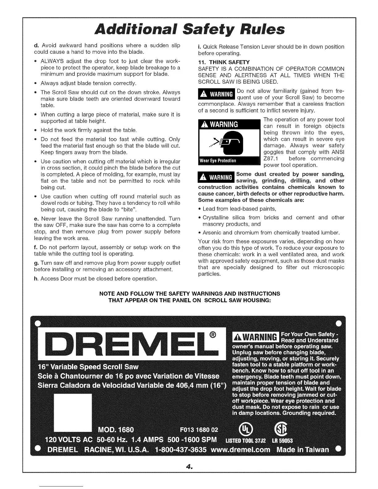 THAT APPEAR ON THE PANEL ON SCROLL SAW HOUSING: