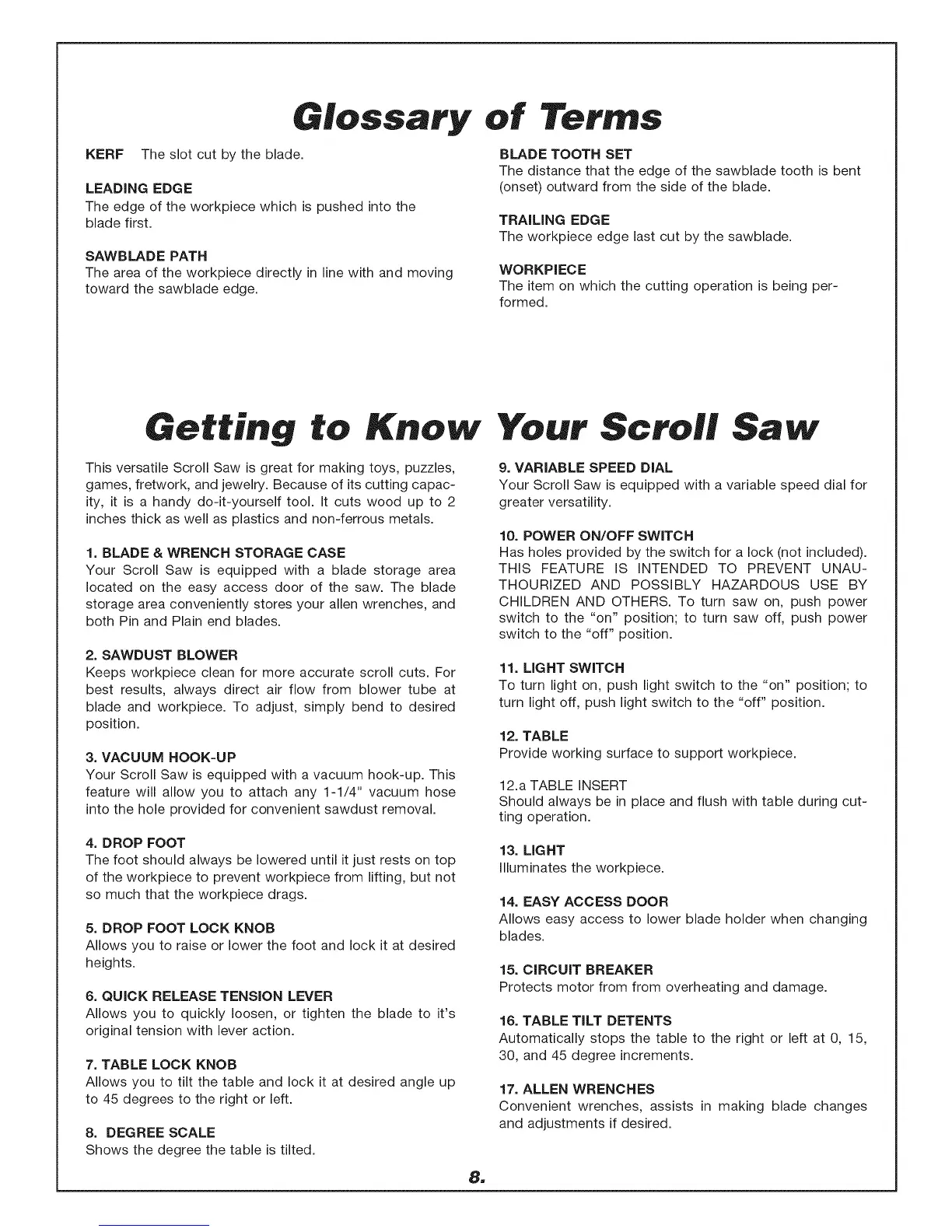 Your Scroll Saw is equipped with a vacuum hook-up. This