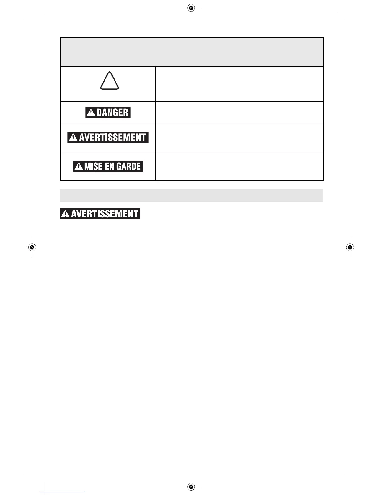Les définitions ci-dessous décrivent le niveau de gravité pour chaque terme signalant un danger. Veuillez lire le