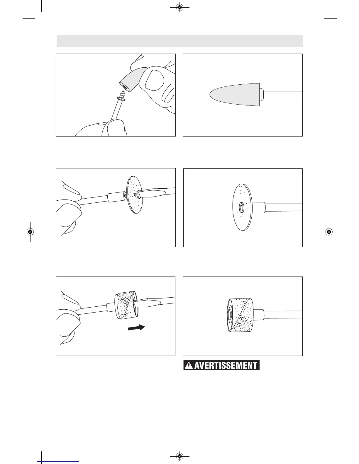 Le mandrin N° 401 s'emploie avec les meules et l'embout de polissage en feutre. Insérez l'embout sur la vis