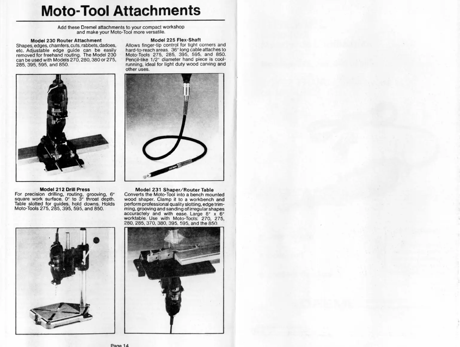 removed for freehand routing. The Model 230 Moto-Tools 275, 285, 395, 595, and 850.