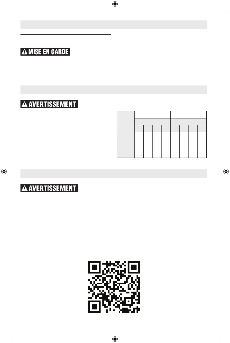 courant nécessaire à votre outil. Ceci préviendra une