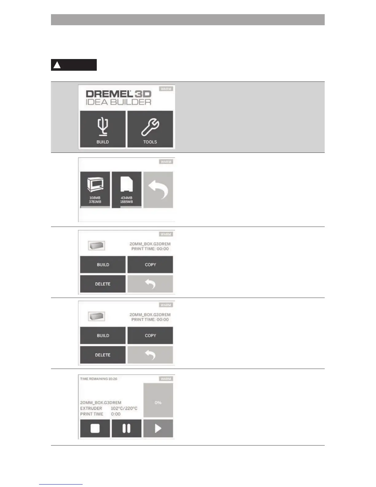 BEACHTEN SIE BEI DER VERWENDUNG DES DREMEL 3D20 ALLE WARNUNGEN UND