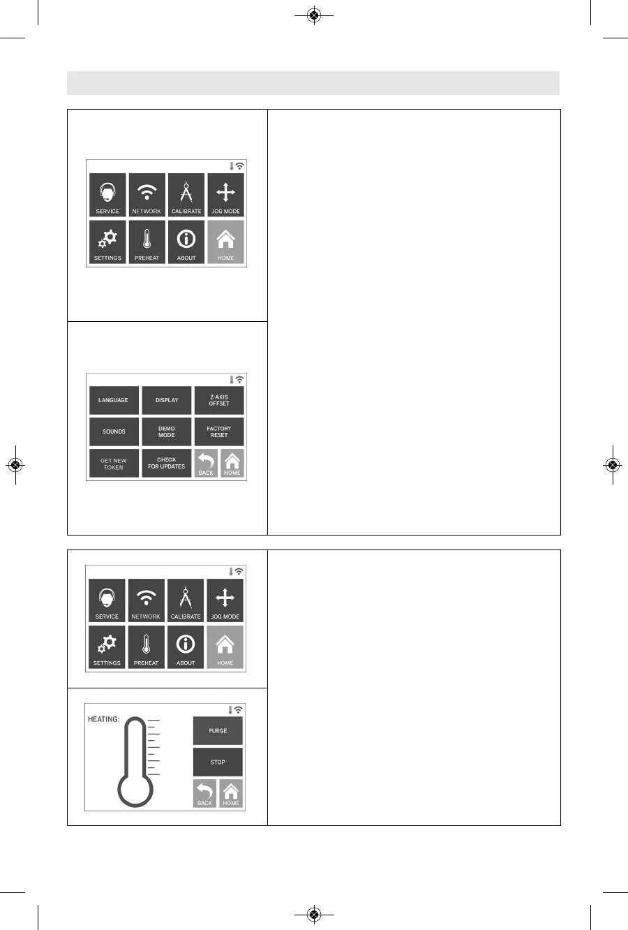 stockées dans l’imprimante 3D40 et revenir aux paramètres