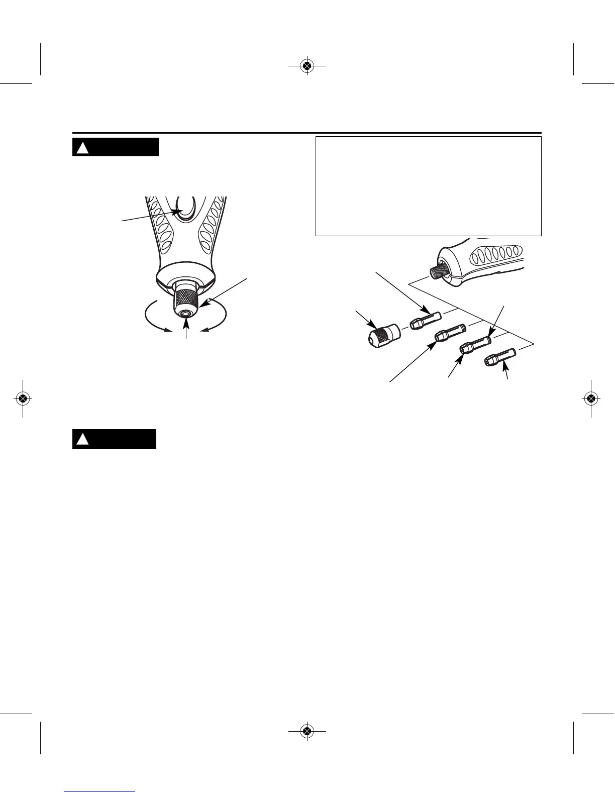 TUERCA DEL PORTAHERRAMIENTA — Para aflojarlo, opri-