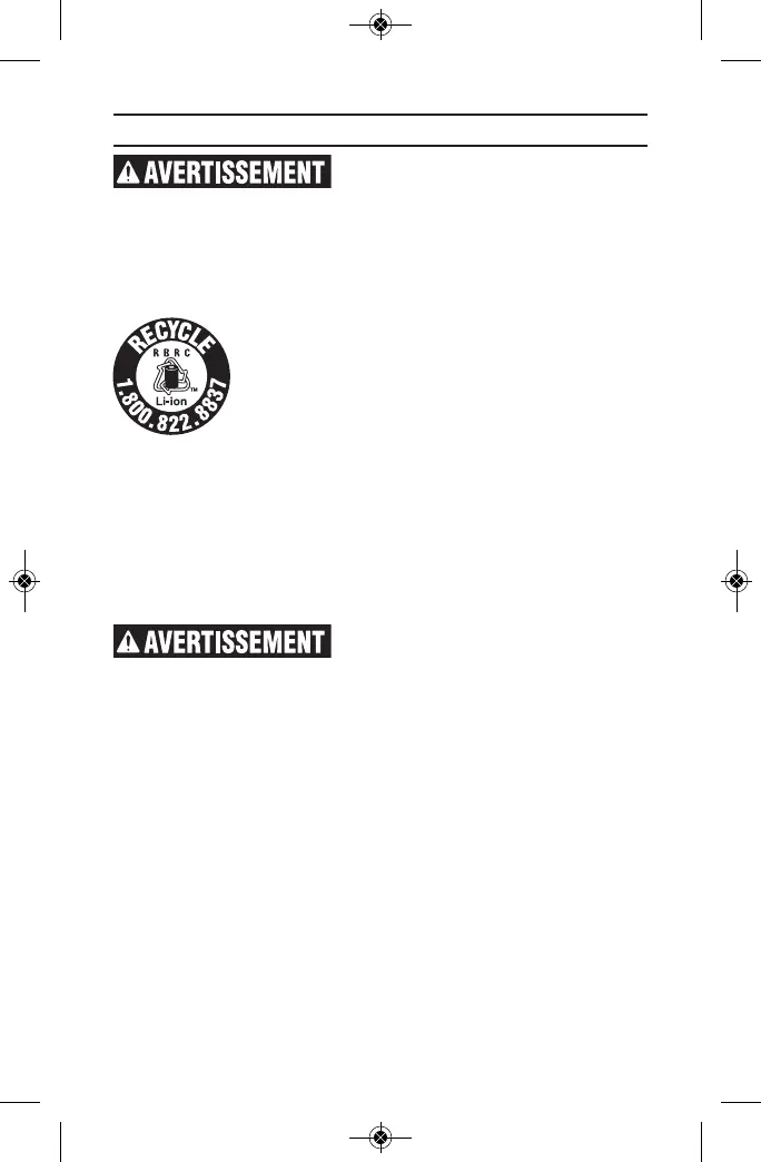 l'outil. Avant la mise au rebut, protégez les bornes exposées à l’aide d’un ruban