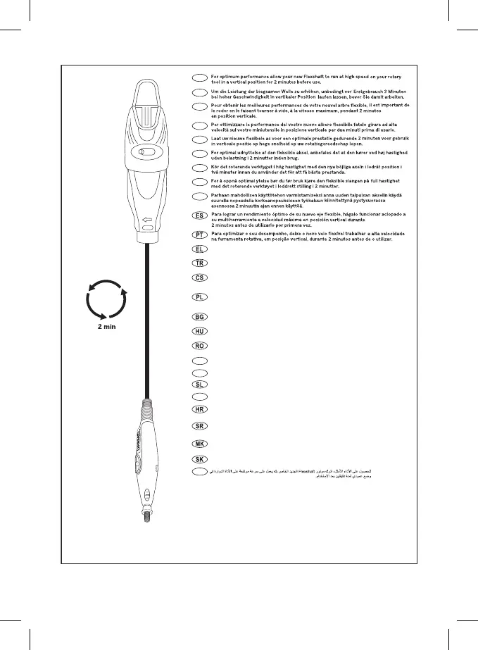 Aby ste dosiahli optimálny výkon, pred použitím ponechajte nástroj Flexshaft spustený