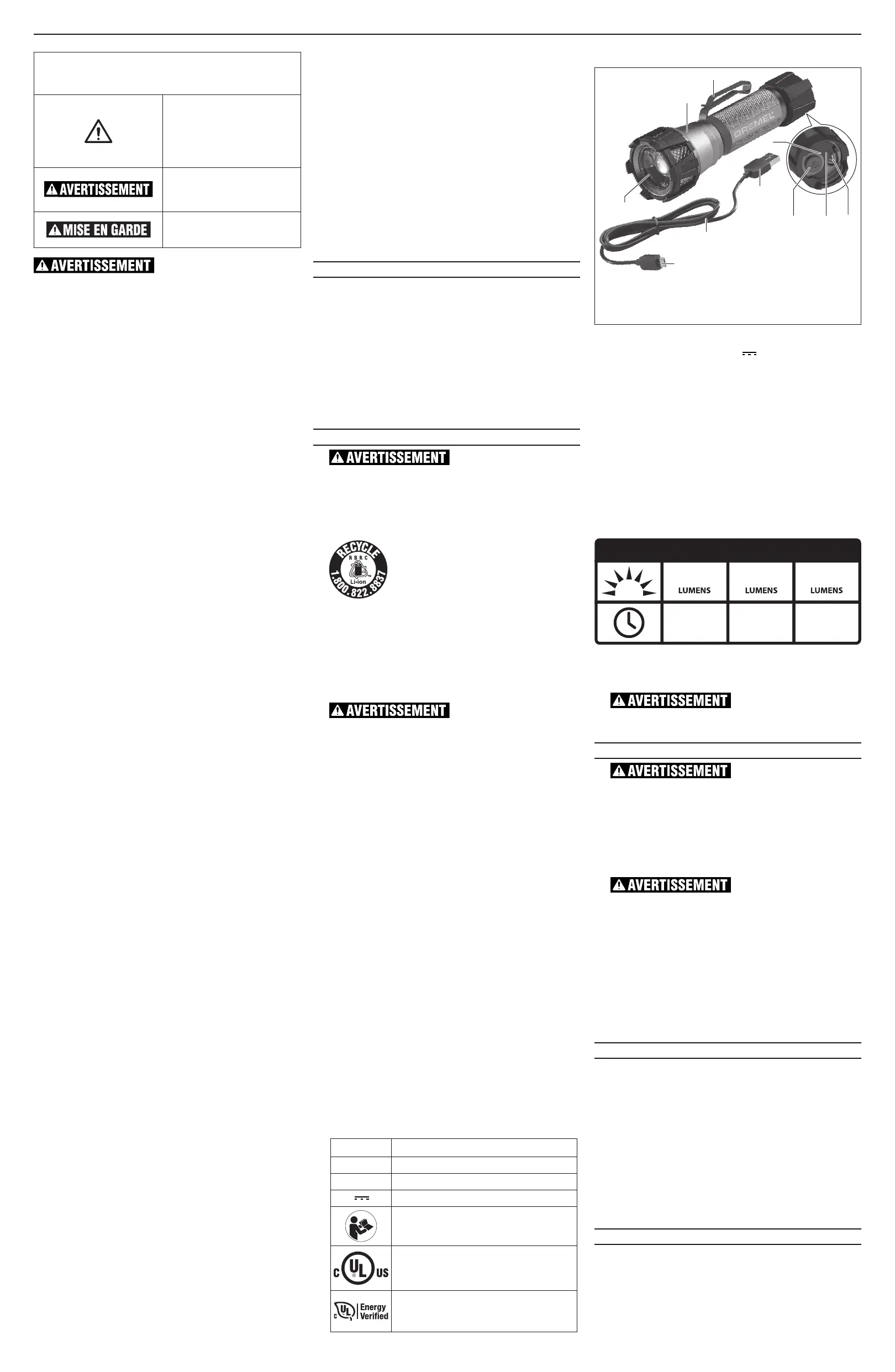 b. Avant de vous servir de la lampe de poche, lisez toutes les instructions et les
