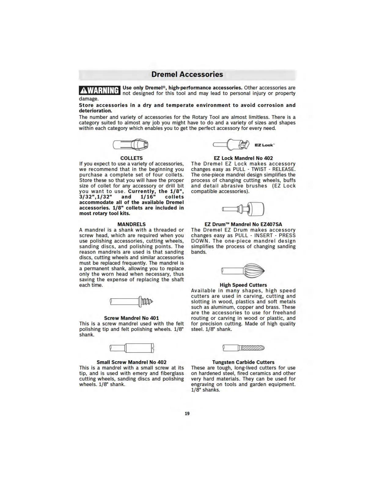Dremel Lite 7760 - Collets and Mandrels; Specific Accessory Types