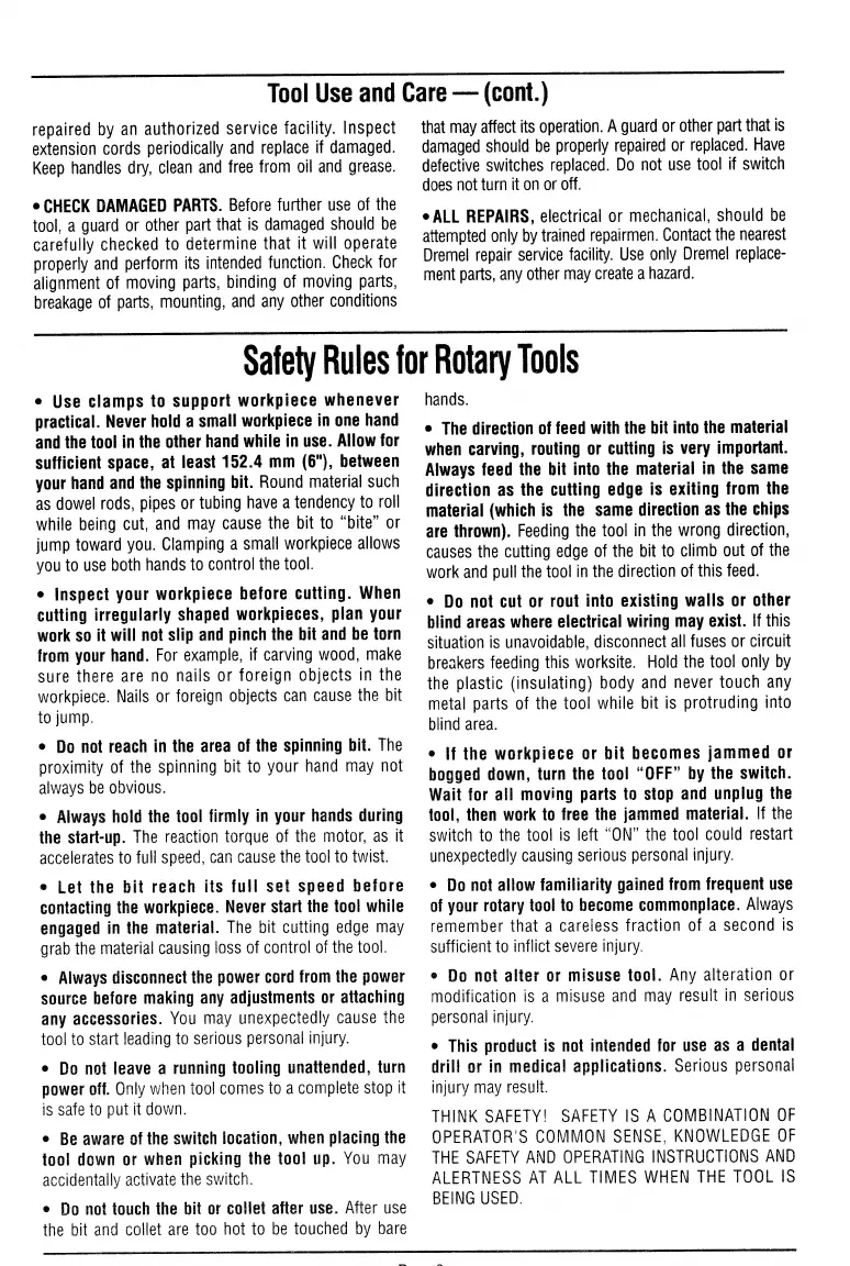 Dremel MultiPro 395 - Rotary Tool Specific Safety; Workpiece Securing and Handling; Operational Safety Practices