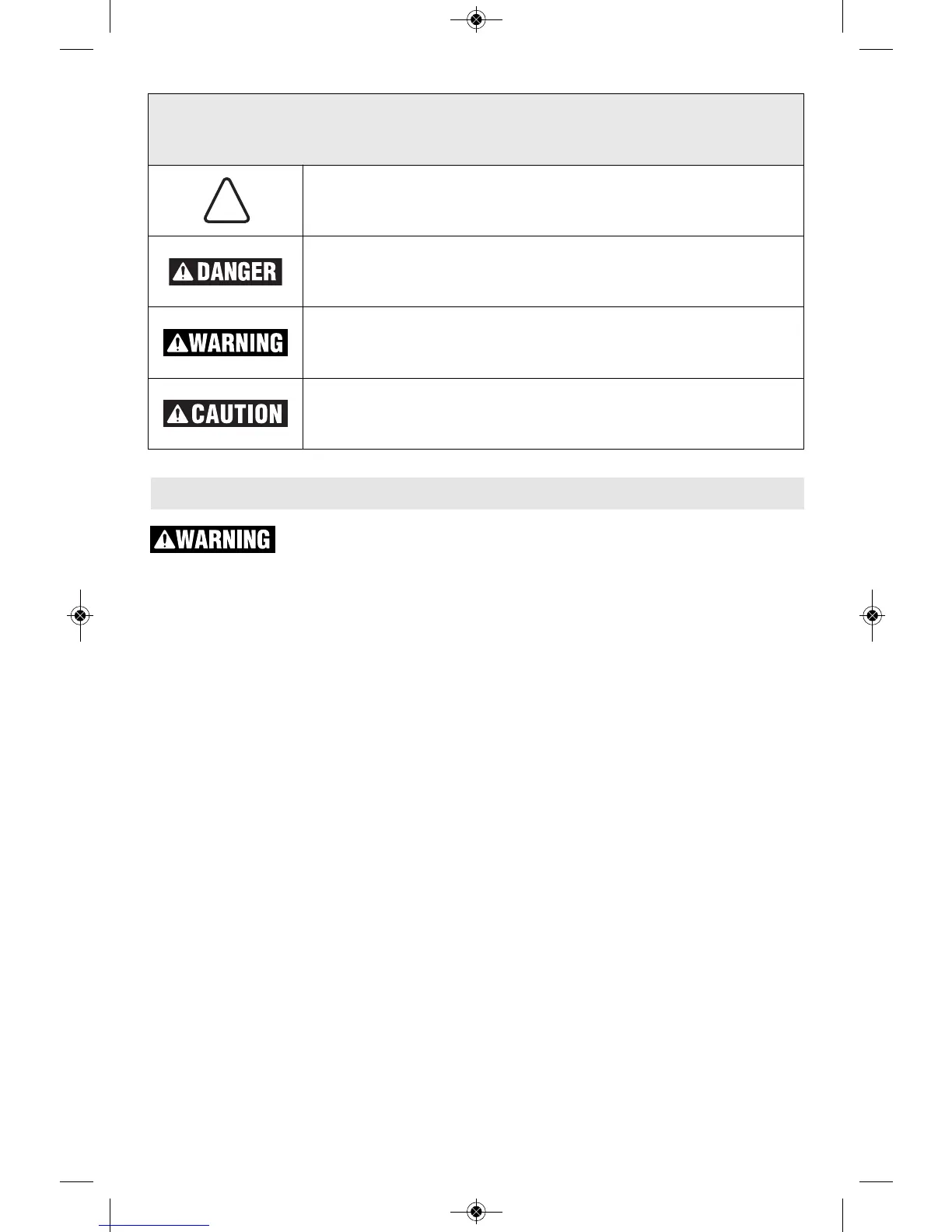 The definitions below describe the level of severity for each signal word. Please read the manual