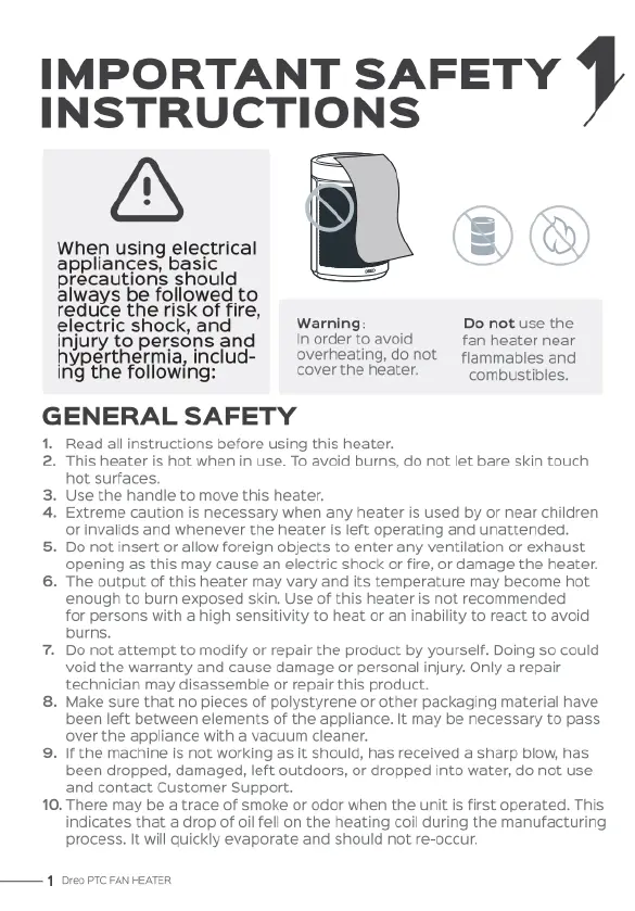 dreo Atom 316 - Important Safety Instructions; General Safety Precautions