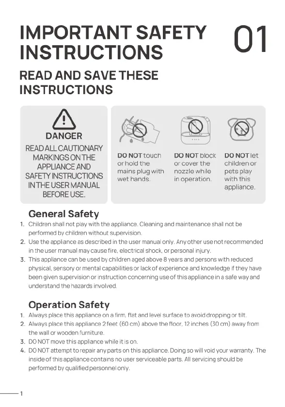 dreo HM311 - Important Safety Instructions; General Safety Guidelines; Operation and Placement Safety