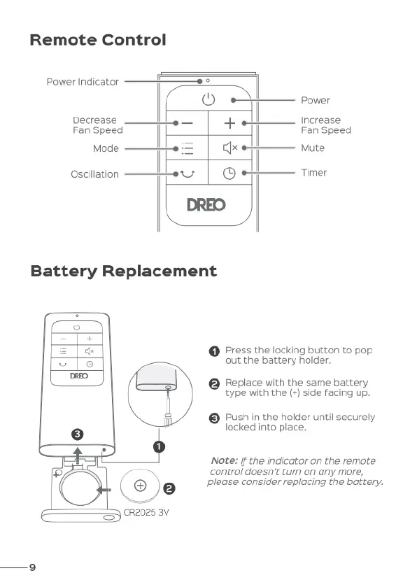 dreo Lynx CF511 - Remote Control; Battery Replacement