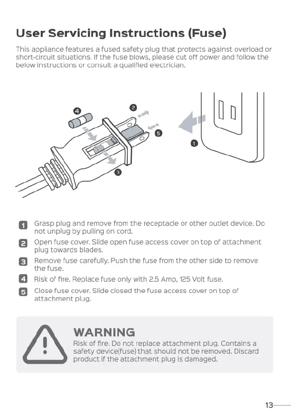 dreo Nomad One - USER SERVICING INSTRUCTIONS; User Servicing Instructions (Fuse)