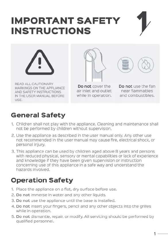 dreo Nomad One - IMPORTANT SAFETY INSTRUCTIONS; General Safety; Operation Safety
