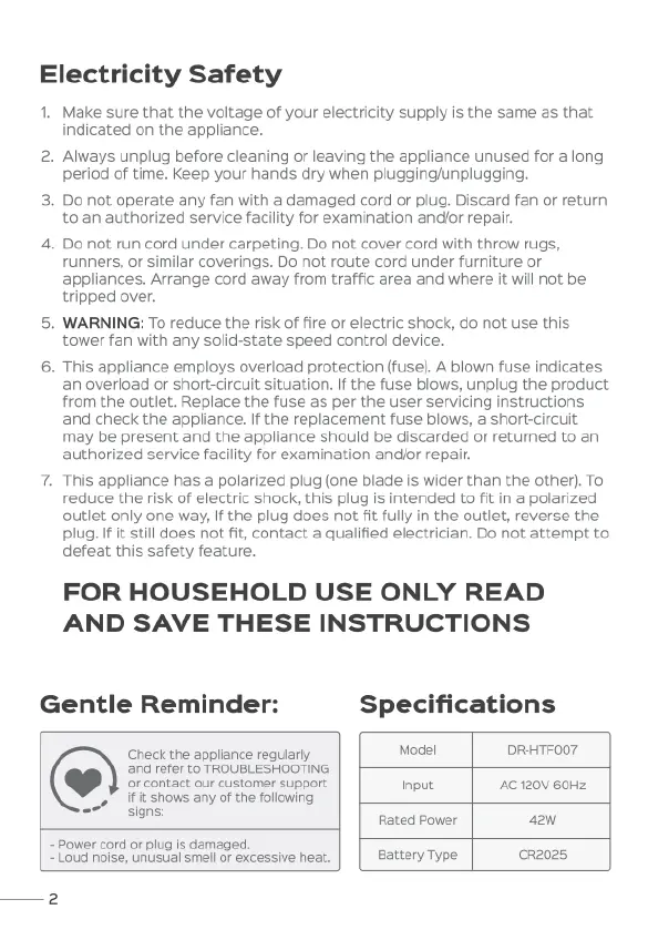 dreo Nomad One - ELECTRICITY SAFETY; Electricity Safety