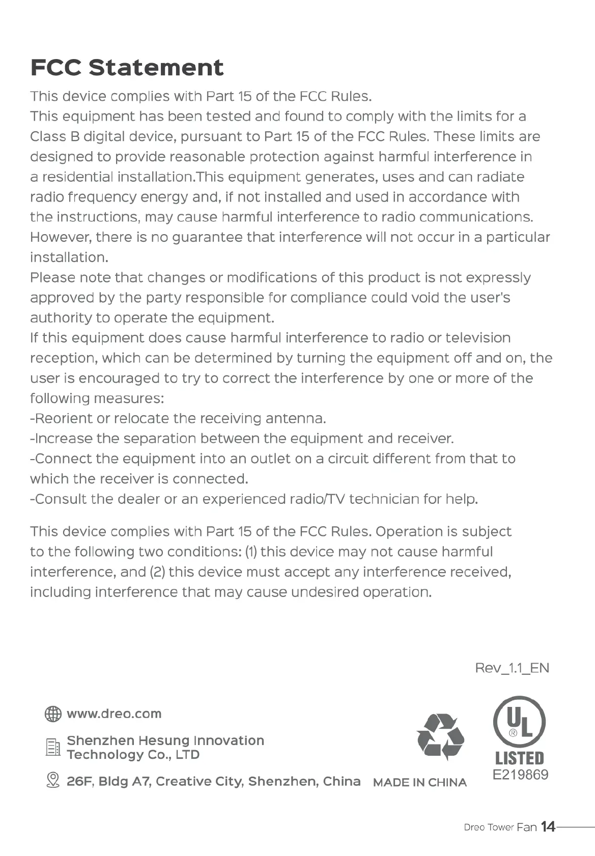 dreo Pilot Max S - FCC Statement