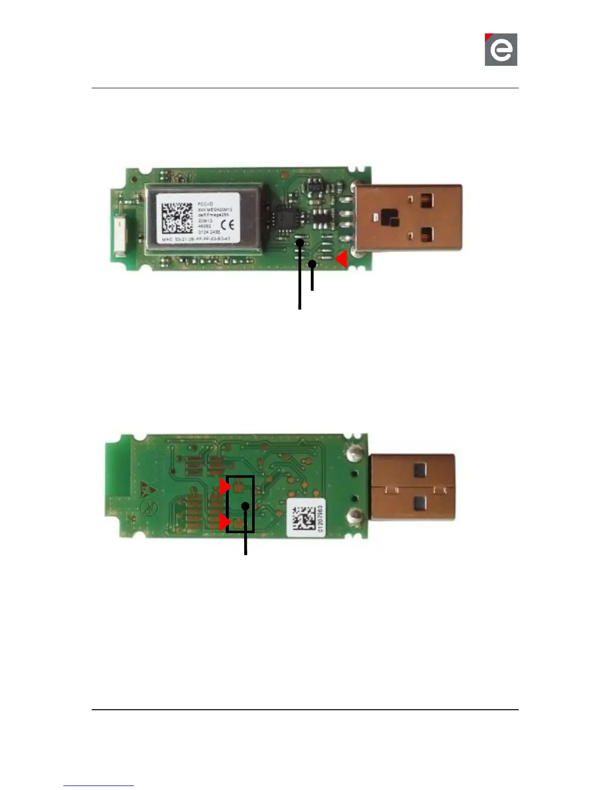 The USB Dongle offers the use of two status LEDs. The first LED is connected with signal