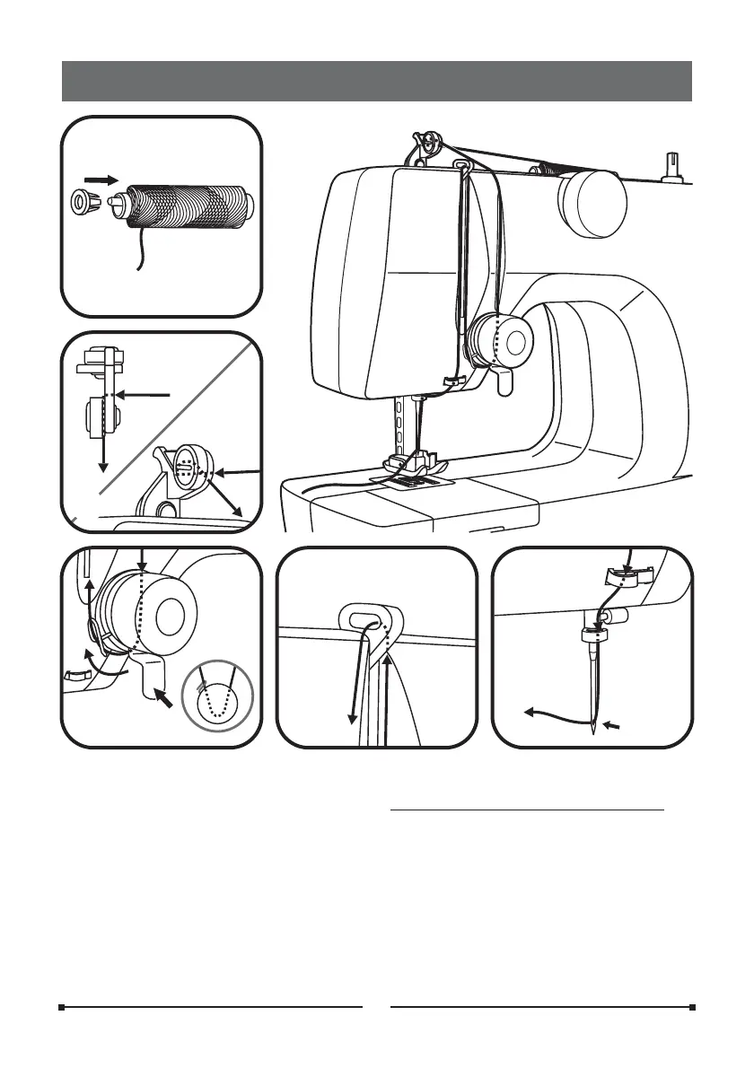 2. Siga al pie de la letra la secuencia numerada (1-5) para el enhebrado del