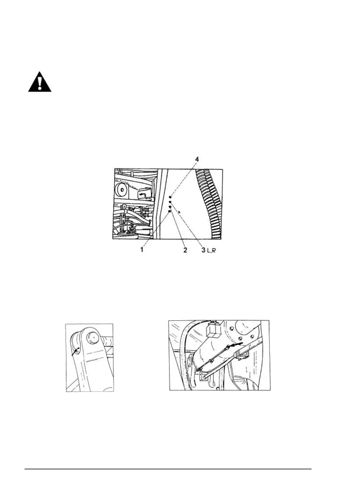 L, R- fittings are located on the left (L) hand side and right (R) hand side of the machine frame.