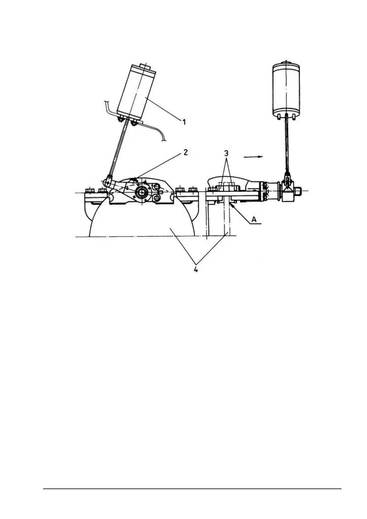 1. Undo warm slack adjuster 2 until hydraulic cylinder spring 1 tension is completely removed.