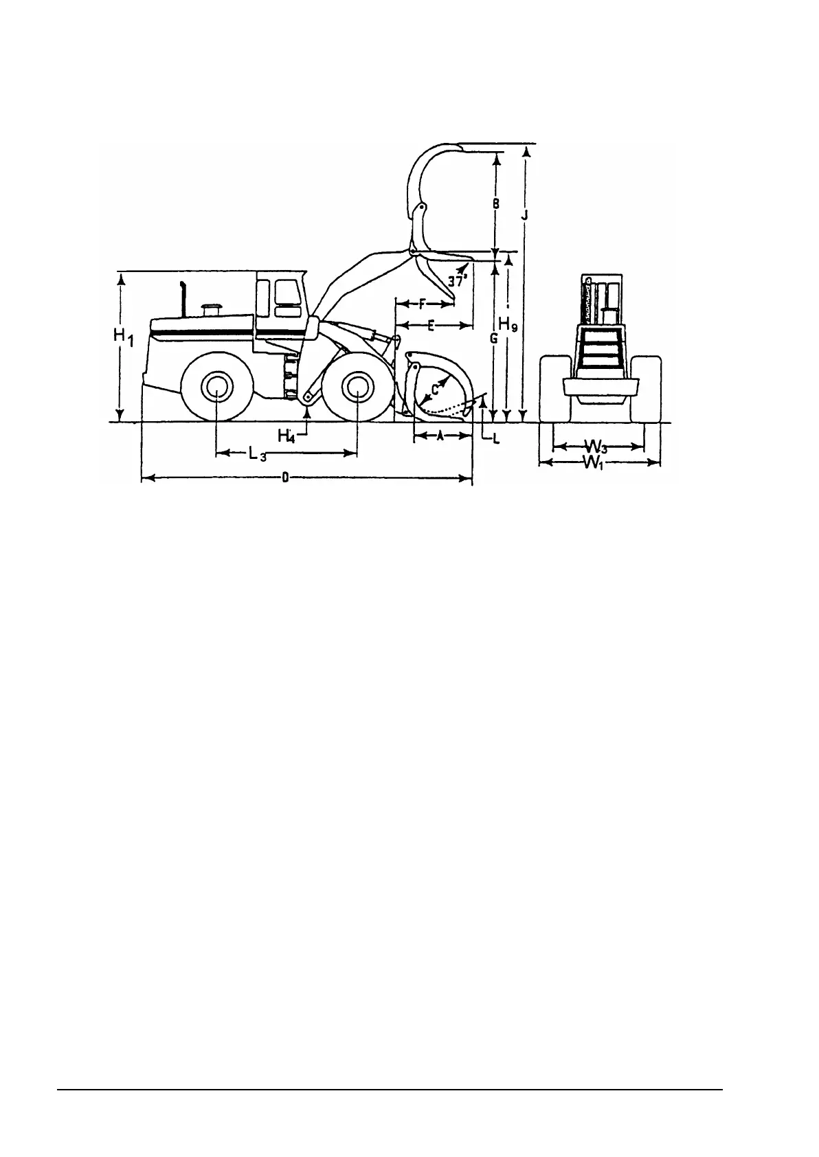 F Reach at maximum dump and maximum lift.............................................. 2000 mm .......2170 mm