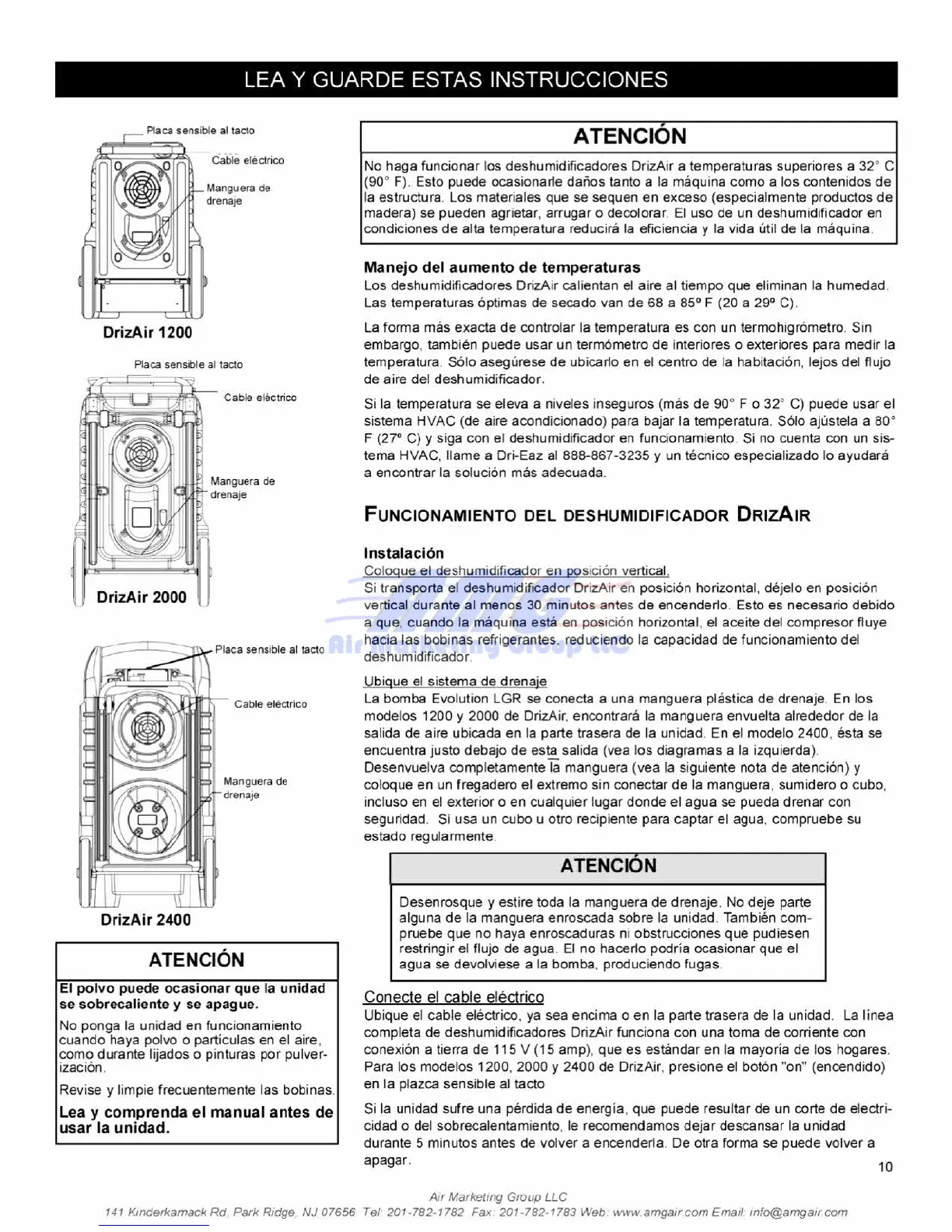 No haga funcionar los deshumidificadores DrizAir a temperatures superiores a 32° C