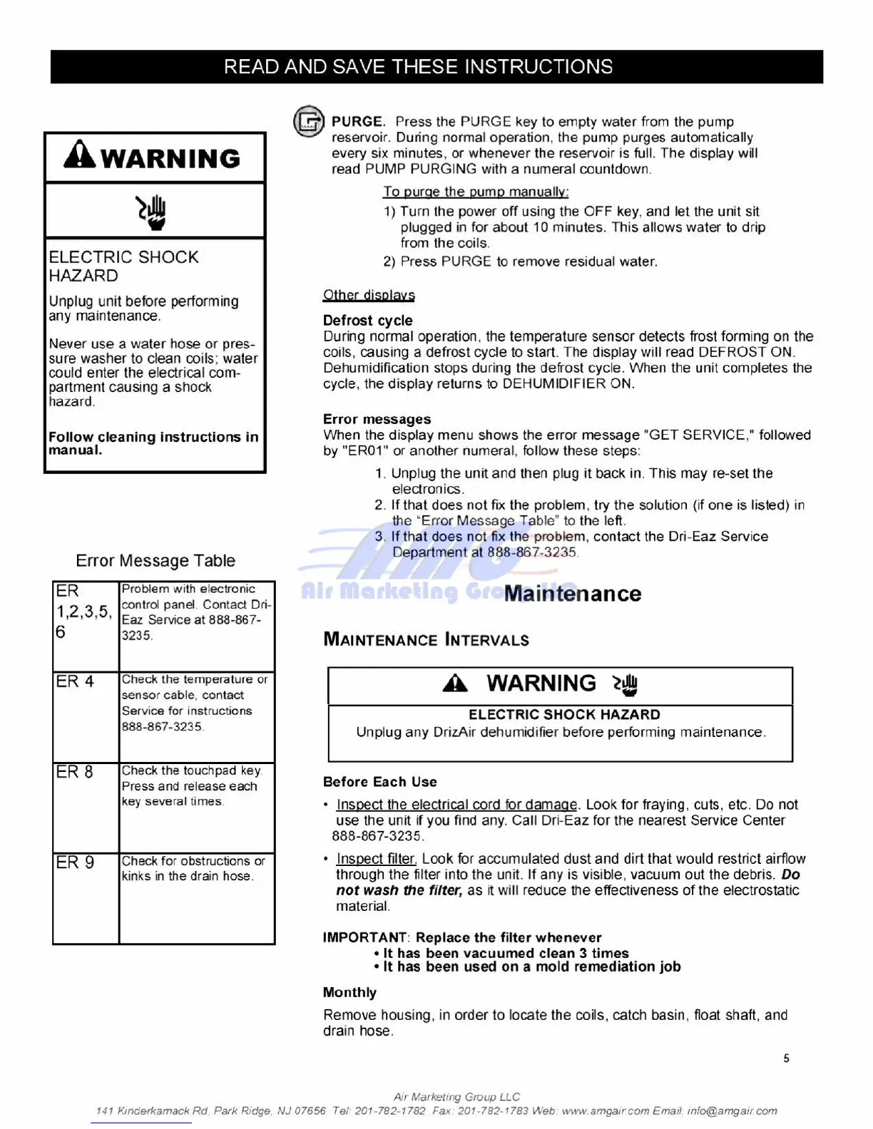 Unplug any DrizAir dehumidifier before performing maintenance.