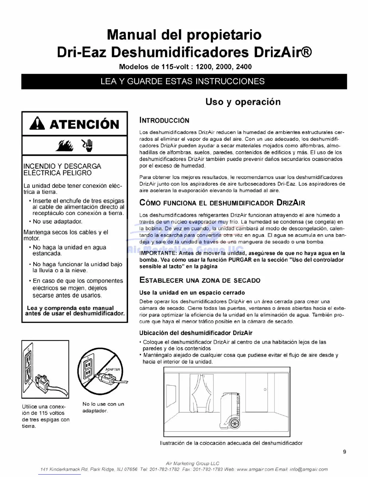 Debe operar los deshurnidtficadores DrizAir en un area cerrada pare crear una