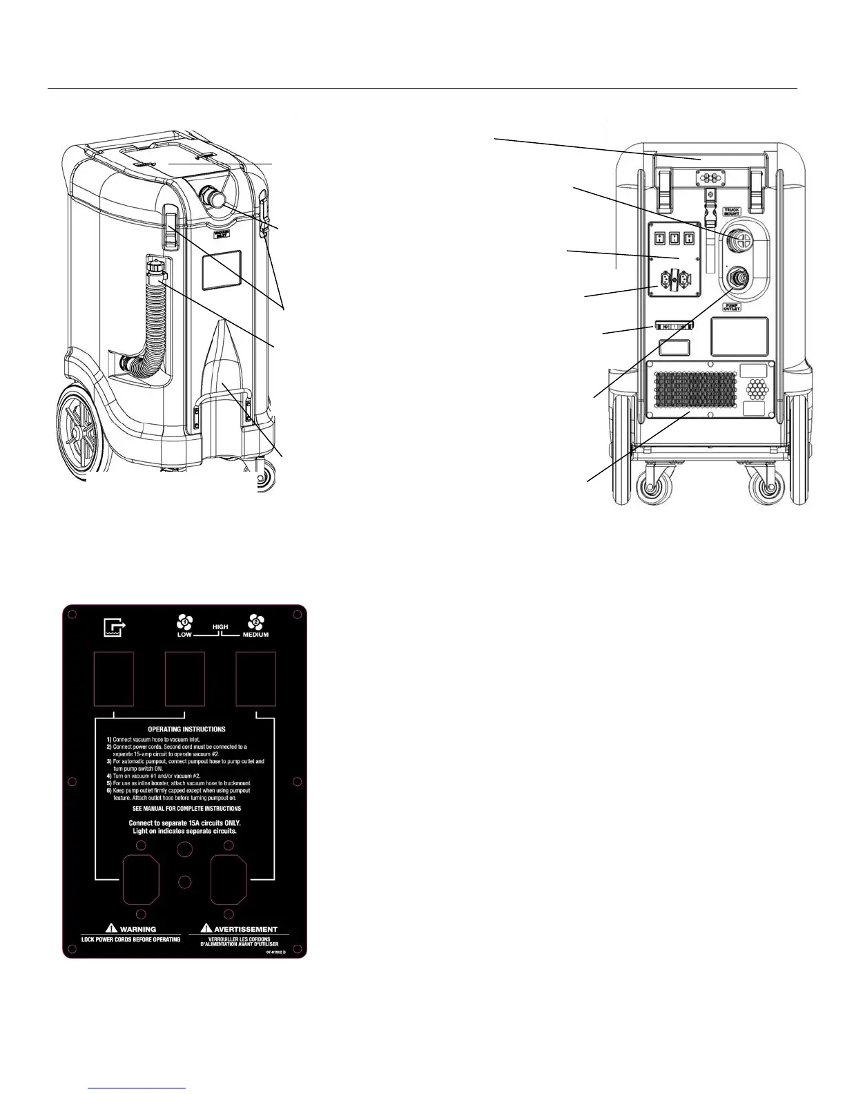 1, 2: Interruptores de los sopladores de vacío.