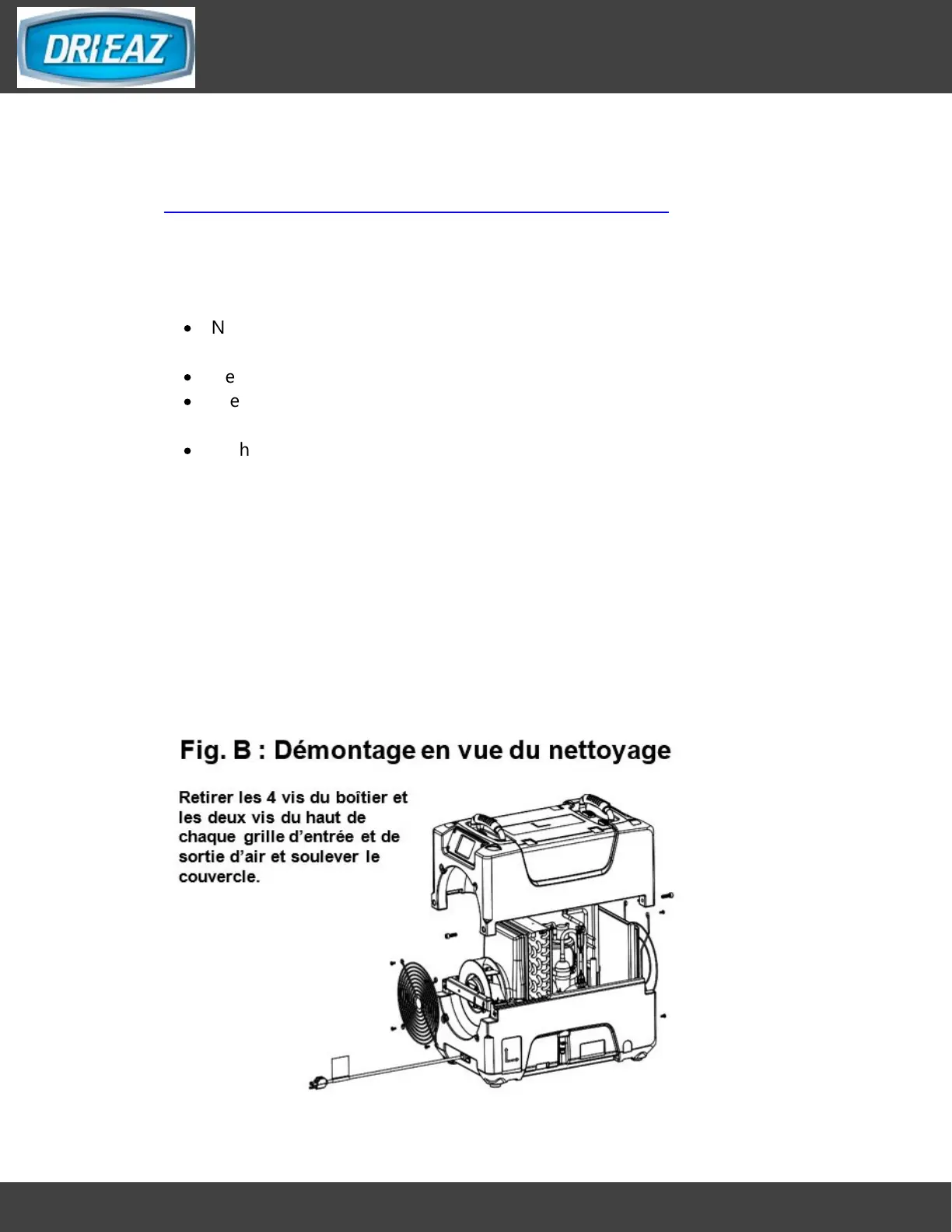 déshumidificateur avant d’effectuer une opération de maintenance.
