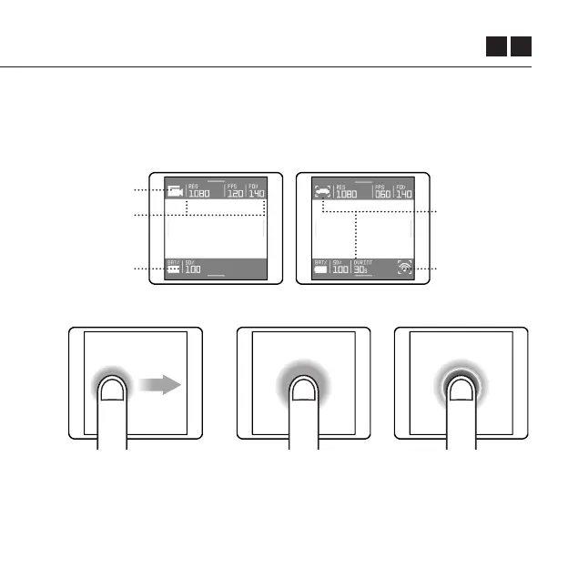 Drei Gesten werden zur Bedienung der Kamera verwendet: Swiping, tippen und Gedrückt Halten.