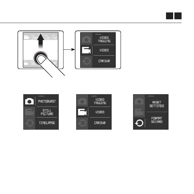 Im Modus-Menü werden links drei Symbole angezeigt: eine Kamera, Video-Kamera und der