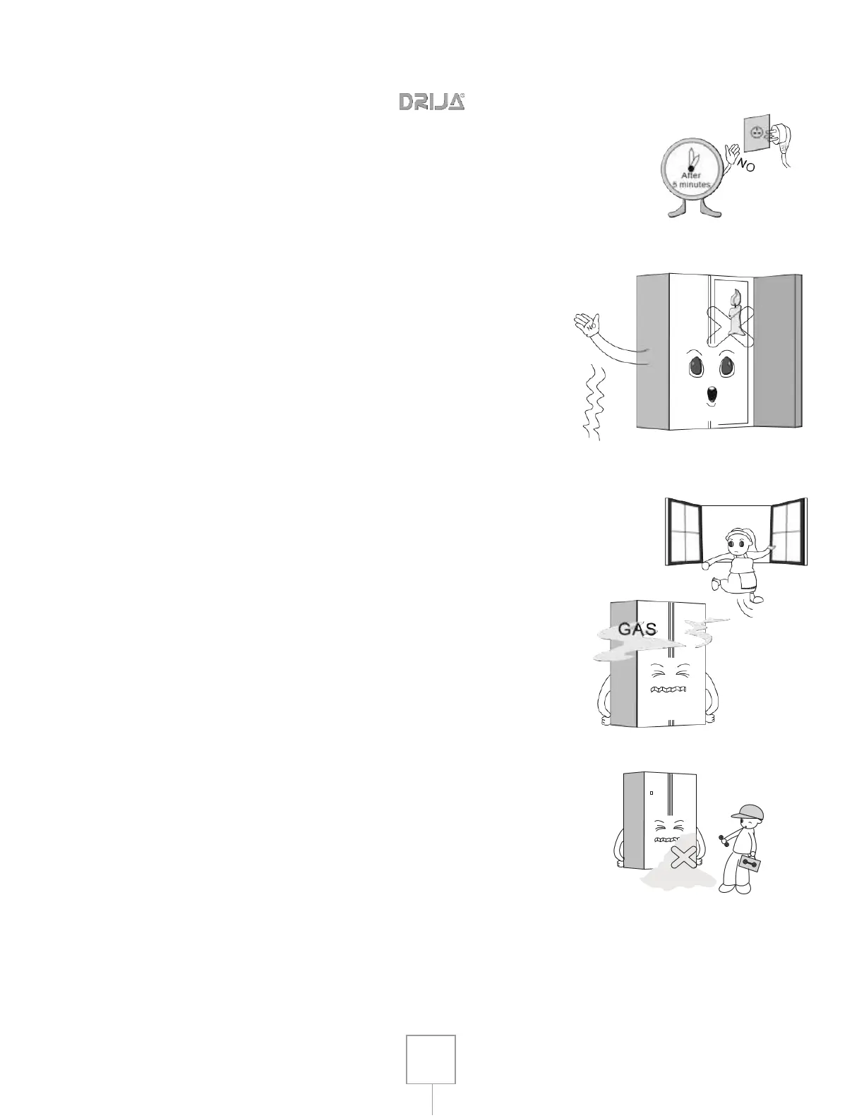 x When there is a gas leak, do not touch the refrigerator
